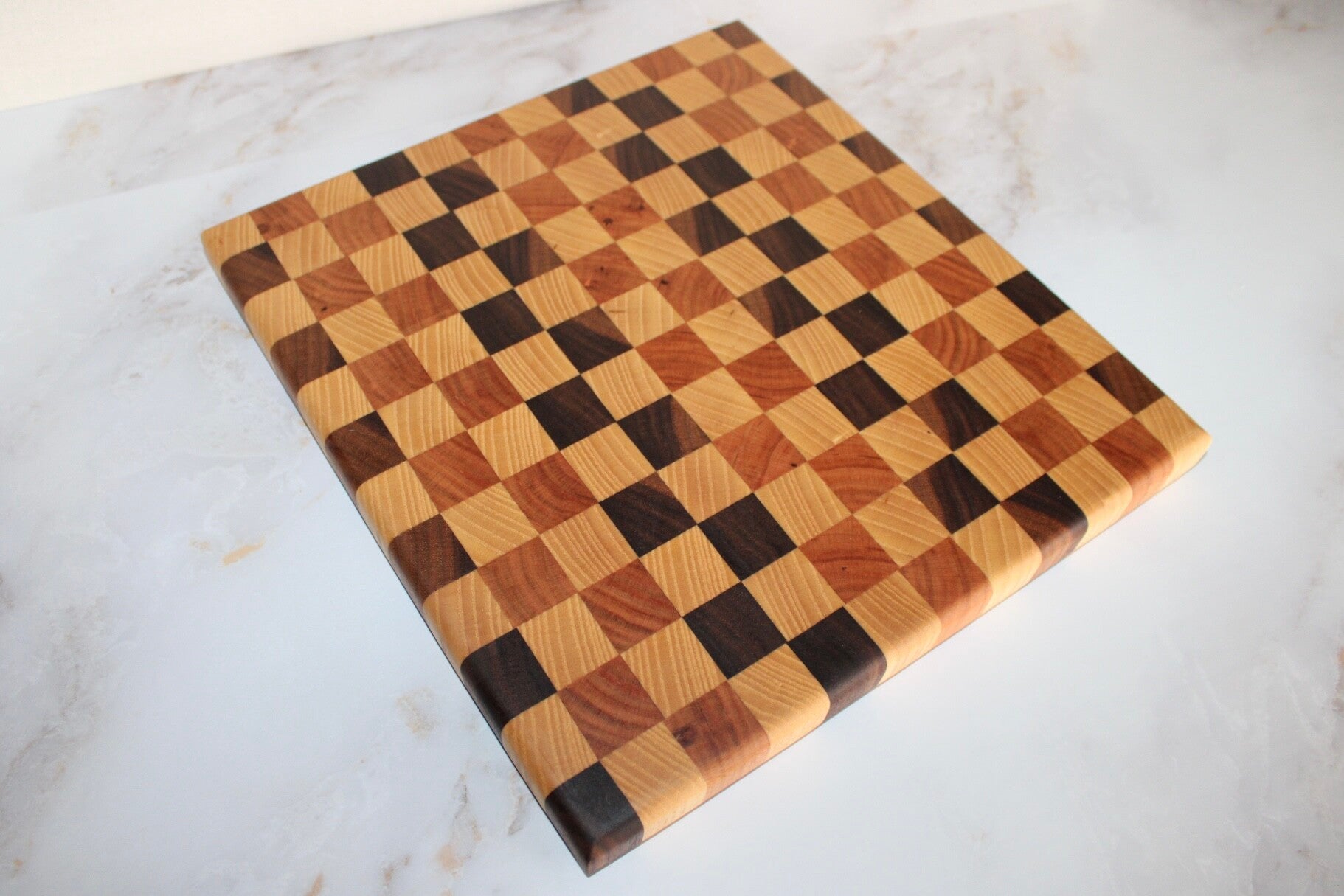 Walnut, Cherry, and Ash end grain checkered pattern